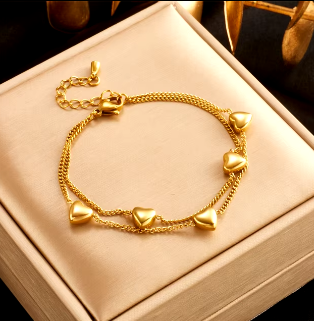 Женский двухслойный браслет DIEYURO, браслет из нержавеющей стали 316L золотого цвета с подвеской в форме сердца