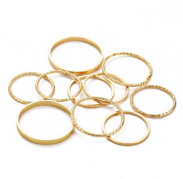 10 шт./компл, кольца на палец с молнией и волнами, в винтажном стиле, золотистые